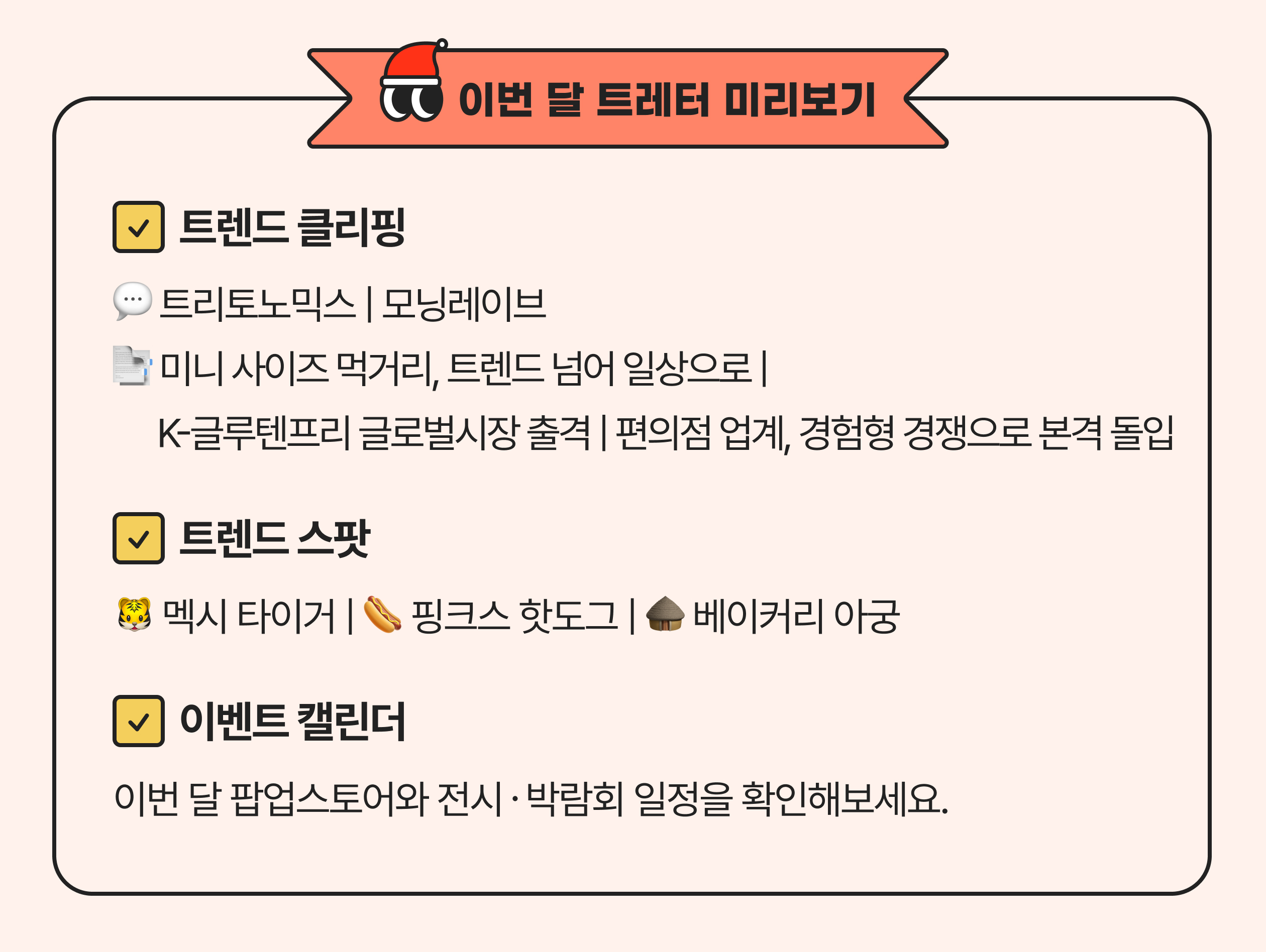 ์ฒ๋ผ ํด์ธ ๋ธ๋๋์ ์ํฅ๋ ฅ์ด ์ ์ ํ๋๋๊ณ ์์ฃ . ํนํ ๋นต์ ์ค์ฌ์ผ๋ก ํ ๊ฐํธํ ์์ฌ๋ฅผ ์ ํธํ๋ MZ์ธ๋๊ฐ ๋์ด๋๊ณ ์๋ ์์ฆ. ์์ผ๋ก ๋ค์ํ ํด์ธ ๋ธ๋๋๋ค์ด ์ ์